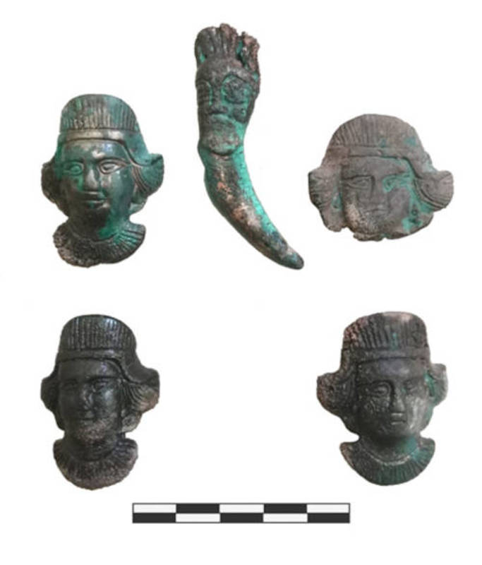 The deposit, found in a shallow, circular pit, included several complete bridle sets with iron bits, horn, and metal cheek-pieces known as “psalia” alongside iron girth buckles, bridle harnesses, and bronze and bone bridle ornaments. The site included 100 major artifacts and 500 smaller, decorative artifacts. One of the most remarkable discoveries was 12 flat, circular plaques decorated with intricate dotted patterns and imagery of swastikas, birds, and mythical beasts.