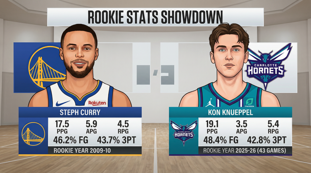 “I know it sounds crazy, but when you watch how this guy is taking the league by storm…” Windhorst continued. “The 3-pointers per game, it’s a different era, look at the percentage, look at the age. You know what, coach? He’s like Steph in that you can’t catch him. One of the great things he does is move without the ball, pass and relocate, set a ton of screens. If you don’t know about Kon Knueppel, if you didn’t watch him at Duke, watch the way he impacts a game.”
