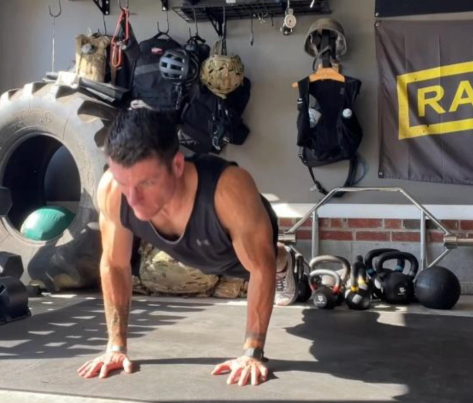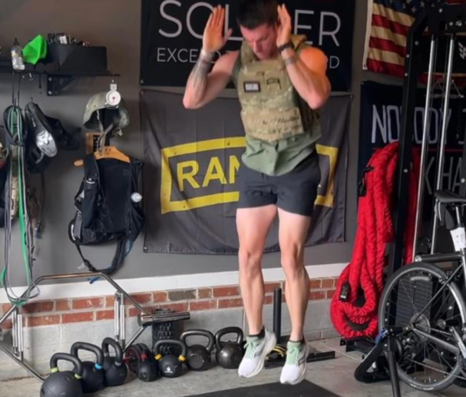 Speaking with Men’s Journal, Fahey shared a workout inspired by a military “smoke session,” designed to push you beyond your comfort zone. In the military, smoke sessions are intense physical corrective training meant to build endurance, strength, and mental toughness. Accordingly, this workout is endurance-focused, combining cardio and strength into a condensed, high-intensity session that maximizes results in minimal time.