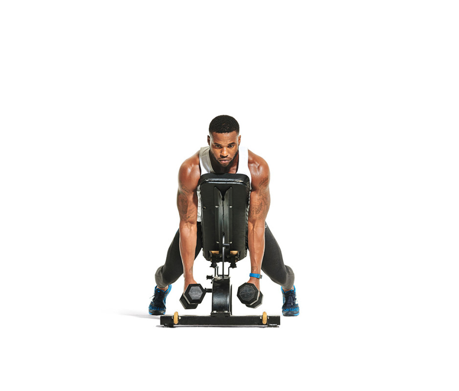 You can perform this exercise on a variety of equipment, including a Smith machine, T-bar row, back machines, or even cables. Below is a simple method using a bench and dumbbells: