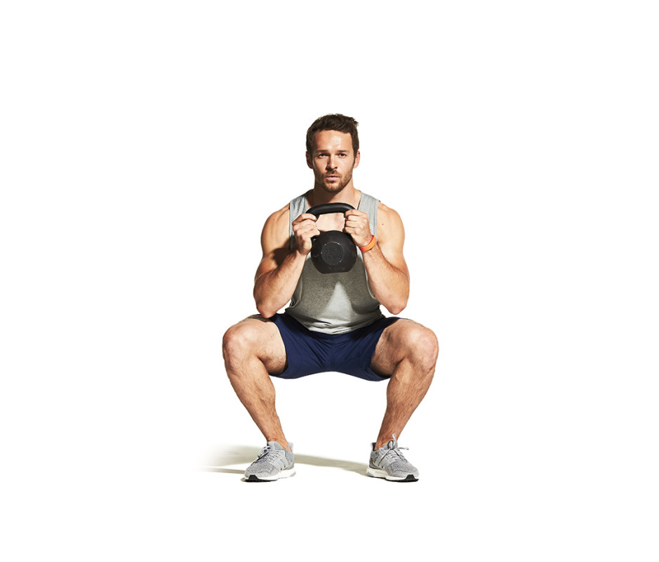 “The sumo squat is one of the many variations of a traditional squat with the main difference [being] the width of stance and the external rotation of one’s feet,” says Mike Poirier, CSCS, VP of fitness at The Edge, “This creates a dynamic where you focus more on [the] inner thigh (adductors).