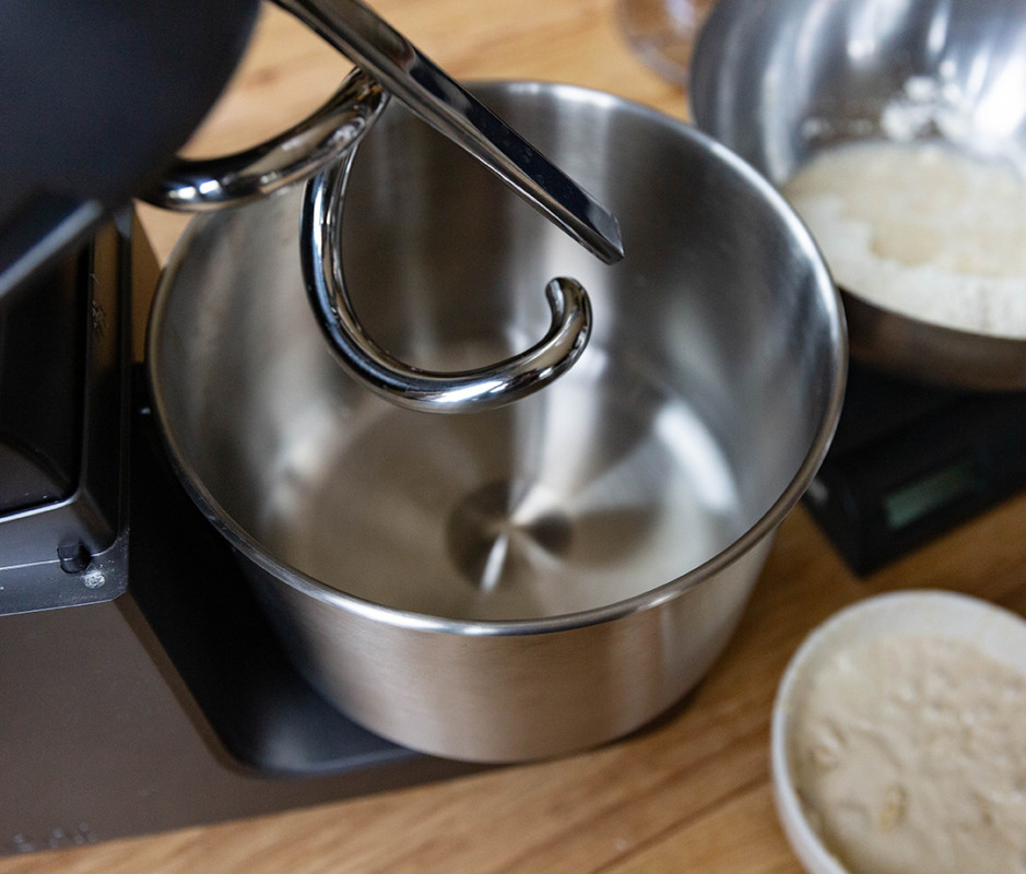 Unlike the KitchenAid mixers which are satisfyingly analog, the Ooni is sleek and modern with a digital touchscreen. There’s one large on/off button that also spins to crank the speed up or down but overall it’s a much more modern entrant to the category. This difference doesn’t change much about operation, but could be a good or bad thing depending on your aesthetic preferences for your kitchen.