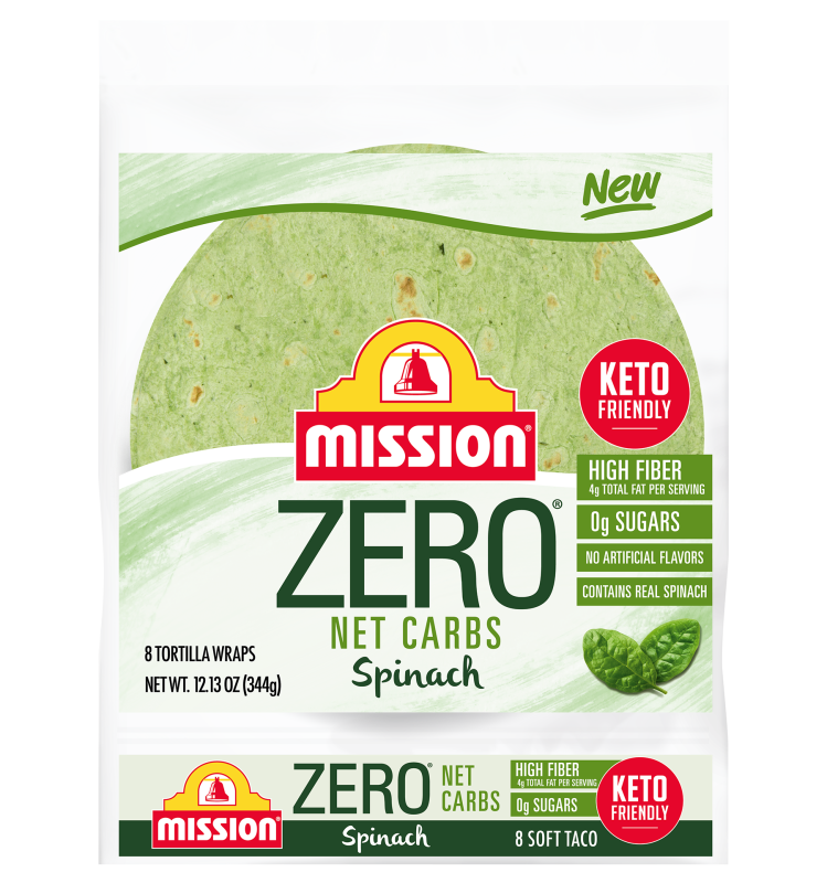 Mission Foods has been expanding its better-for-you lineup for a while, and the Zero Net Carb Spinach Tortillas might be its most practical update yet. They look like regular soft-taco tortillas but come with a lighter label: around 80 calories each, zero sugar, 5-grams of protein, and 15-grams of fiber that zero out the carbs.