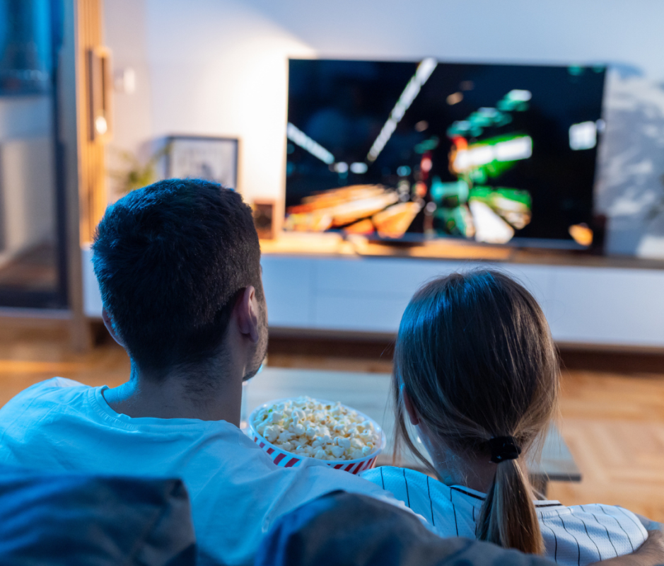 TVs are the preferred choice for most homeowners. They’re simple, provide a consistent picture quality, and work well across most viewing formats, including movies, live TV, sports, and gaming. A big pro that TVs offer over projectors is that the image quality doesn’t get affected by the lighting of a room, in comparison to projectors. TVs are the best choice for bright, open spaces, such as living rooms and casual viewing areas, and for those who want a dedicated gaming setup.