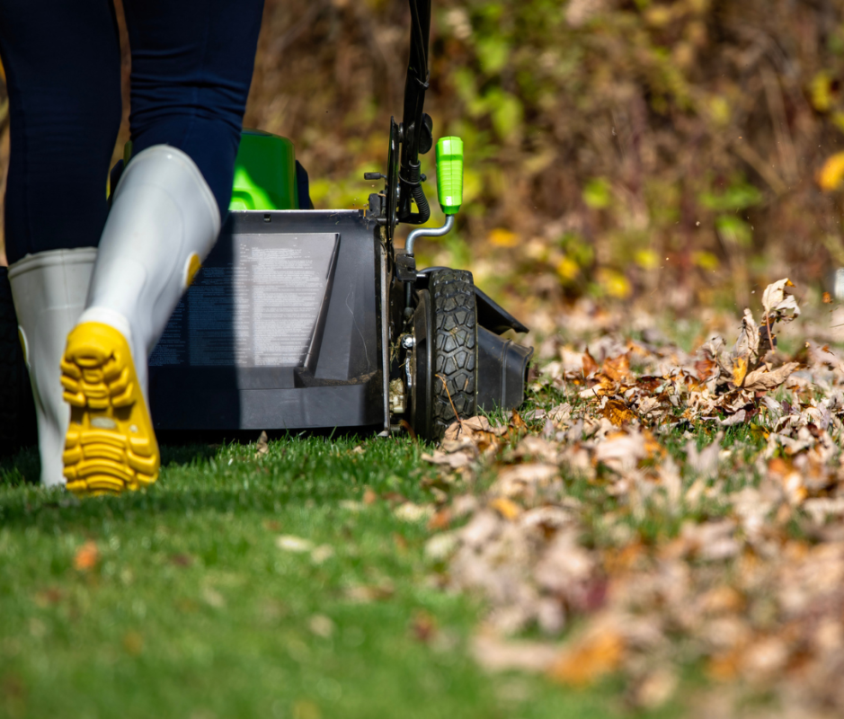 Lawnmower: All you need to do in some cases is set your lawnmower to “mulching mode”, but otherwise, you just mow the leaves as you cut your grass. The difference is that in some cases, you may need to go over the grass a few times to properly break down the leaves.