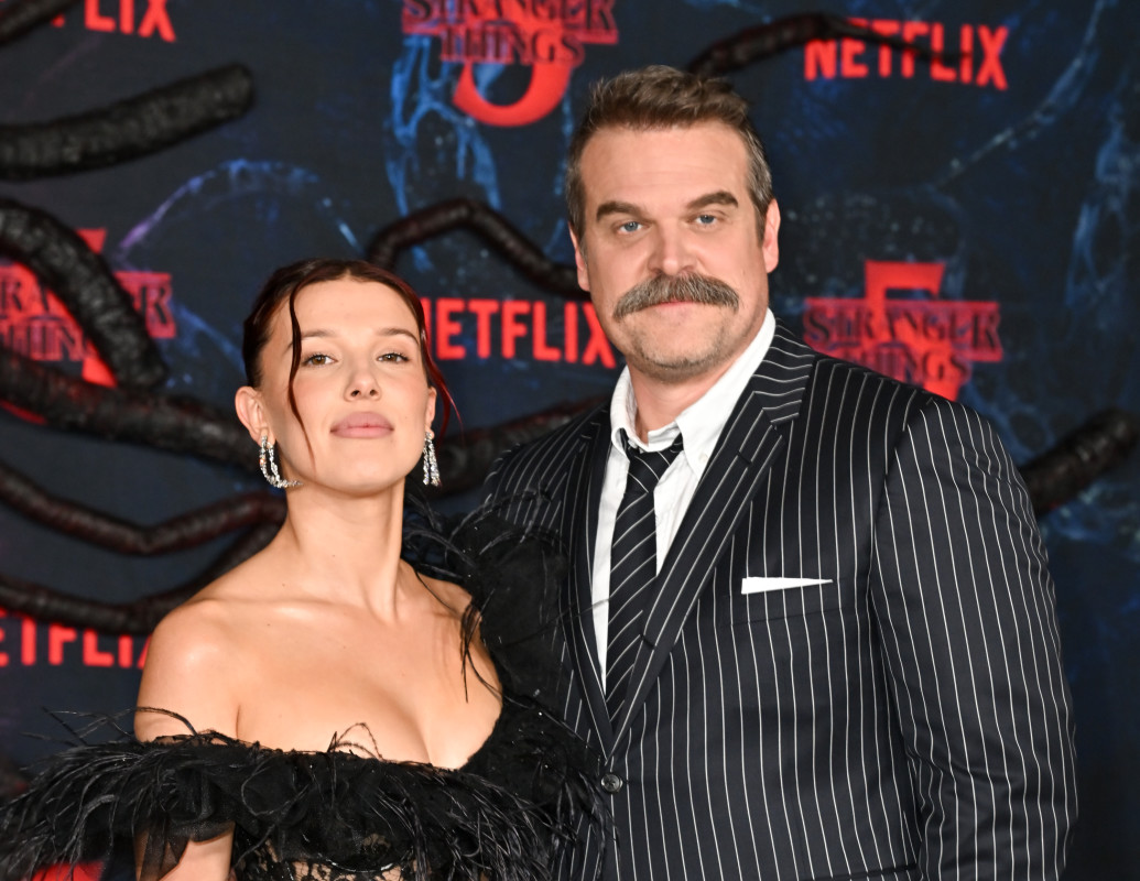 Millie Bobby Brown and David Harbour at the “Stranger Things” Season 5 World Premiere held at the TCL Chinese Theatre on November 06, 2025 in Los Angeles, California. (Photo by Michael Buckner/Variety via Getty Images)