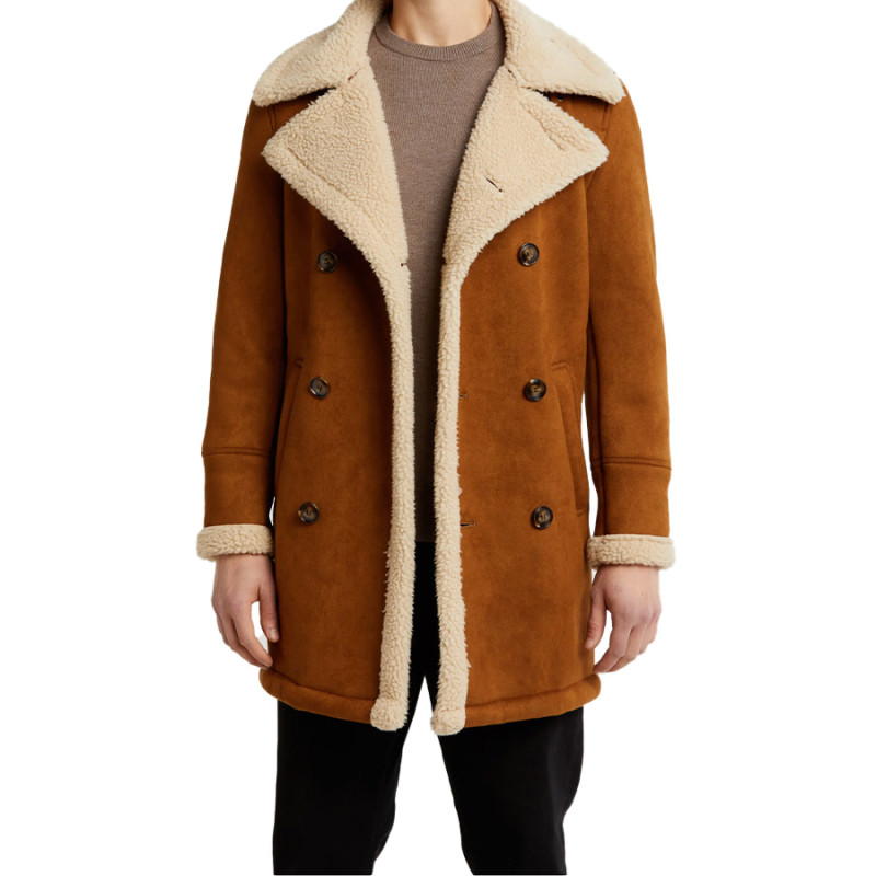 - Style: Shearling double-breasted overcoat