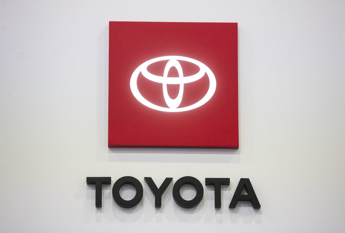 The Toyota logo is shown on a sign of the Toyota exhibit at the 2025 Detroit Auto Show at Huntington Place on January 10, 2025, in Detroit, Michigan. (Photo by Bill Pugliano/Getty Images)
