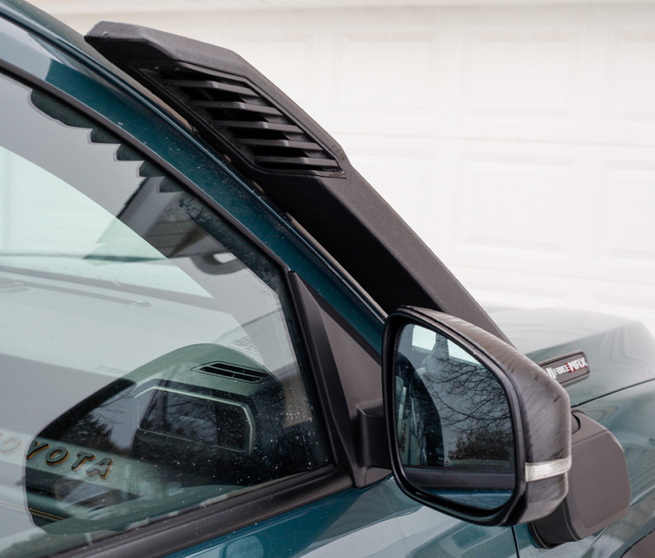 For starters, I found a “deep snow” mode using the Multi-Terrain Select (MTS) dial that controls traction. Warren Chou, the executive program manager at Toyota, told me that the setting monitors tire slip and can apply more or less torque/braking depending on any tire spin. I loved it. Driving up that steep incline, mud and snow flying everywhere as the cows in a nearby pasture looked on in bewilderment, the Trailhunter stayed perfectly straight and kept plowing ahead.