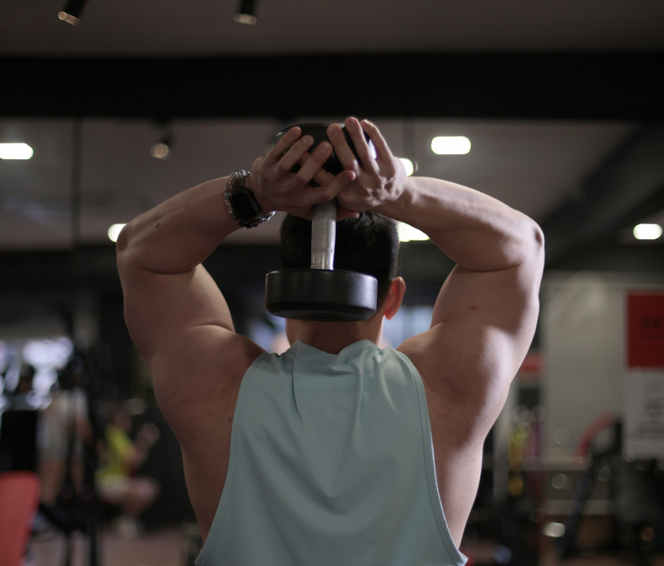 This exercise can be performed using either a dumbbell or a cable. As you lower the weight, focus on feeling a deep stretch in the triceps, because this is where much of the muscle activation occurs. It effectively targets both the long and lateral heads of the triceps.