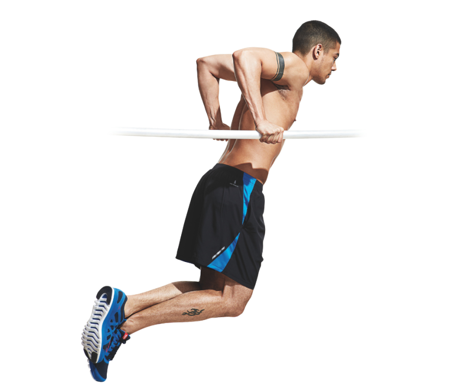 - Grip parallel bars and lift your body.