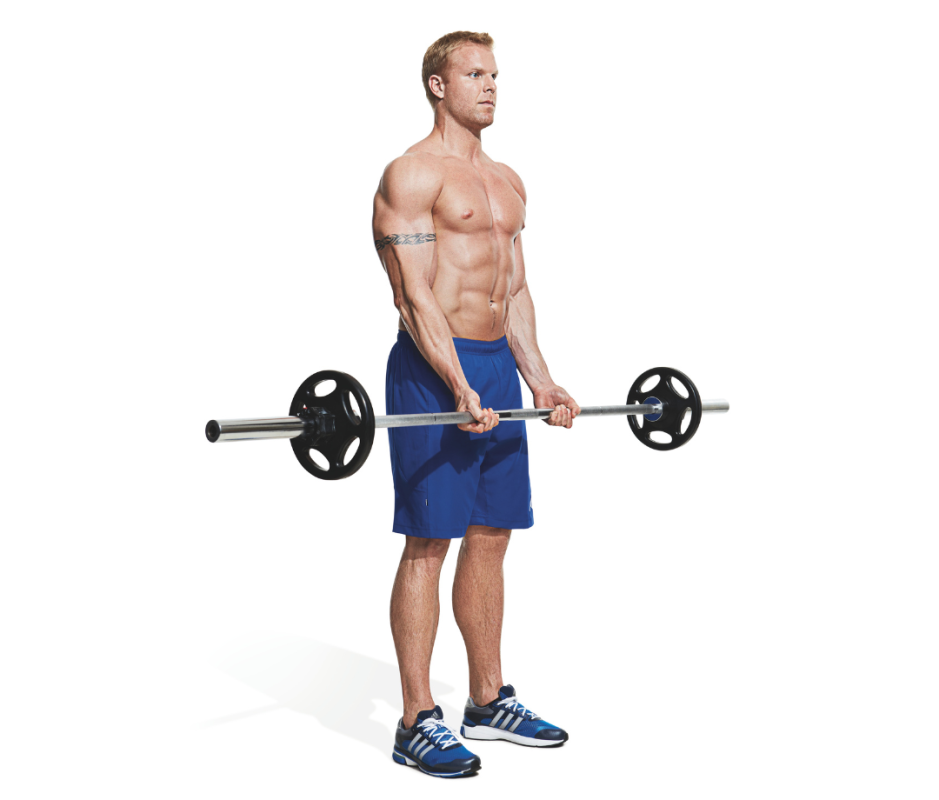 - Grip the barbell with palms facing up and elbows close to your torso.
