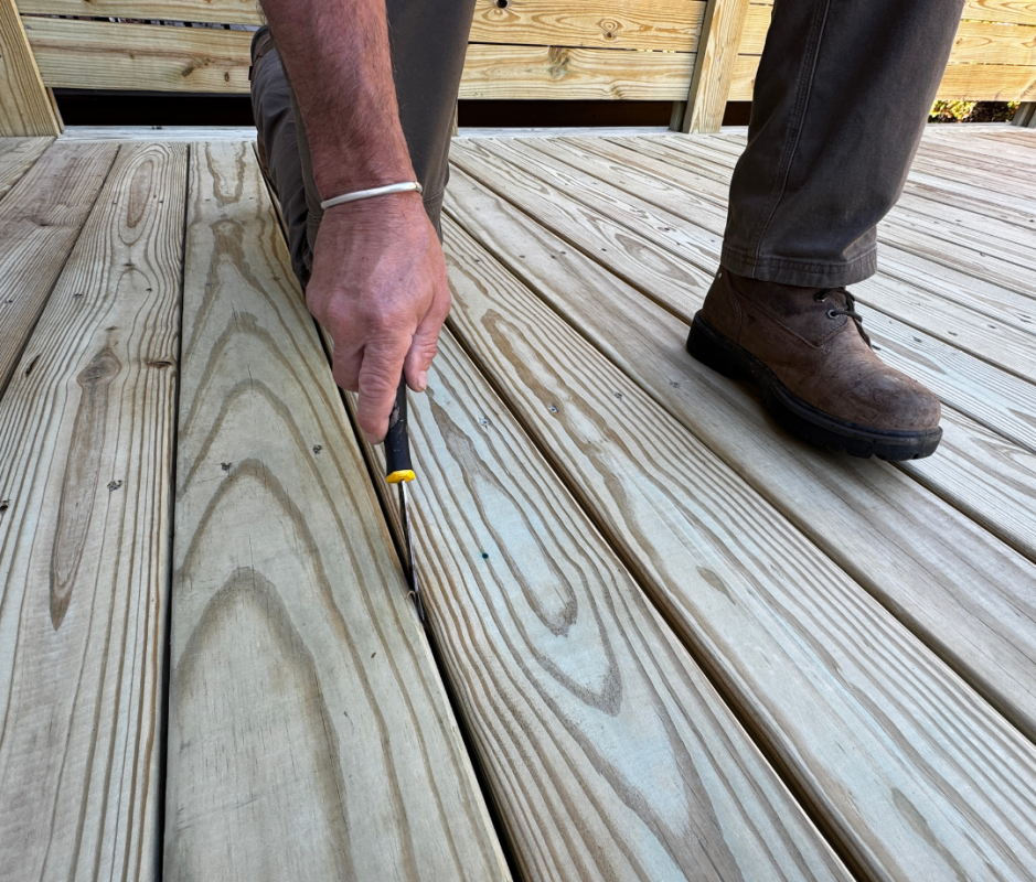 Remove debris from between the deck boards.