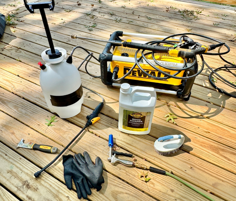 Here are the supplies we use when prepping a deck for stain or sealer.