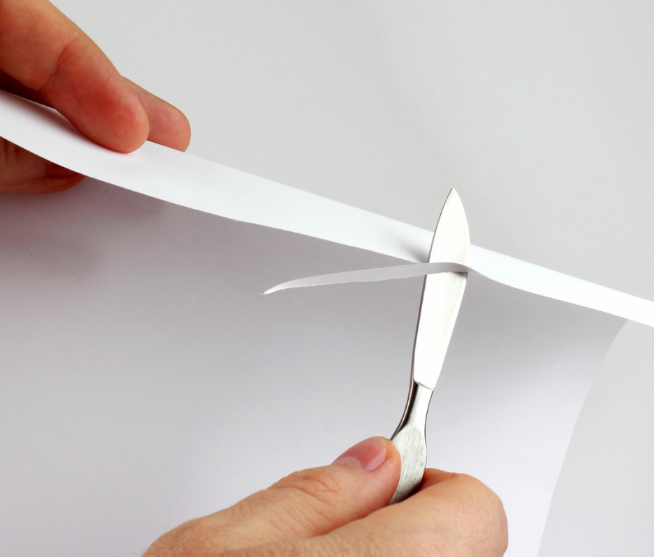 The push-cut and slice tests are both versions of the paper test. “The push-cut test is when you push your blade directly down through a piece of paper without a slicing motion. If it works, this means your knife has the correct edge geometry and great sharpness. The slice test tests how smoothly your knives can cut paper from different angles and using different motions. This will show you how refined the edges of your knives are,” says Clinton.